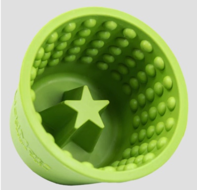 De Yoggie Pot kan worden gebruikt als een leuke en langdurige afleidings- en verrijkingspuzzel bij bijna alle hondenrassen en maten. U kunt voedsel dat aan de binnenkant van deze LickiMat slowfeeder hondenkom is geschraapt, invriezen om de likinteractie te verlengen. Het is het beste om gedeeltelijk in te vriezen om het likken te bevorderen en om bijten en kauwen te voorkomen.